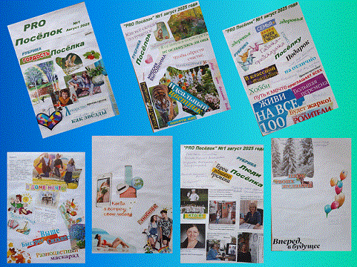 Все участники приняли участие в изготовлении газеты «PRO Посёлок», оформив газетные рубрики: «Гордость Посёлка», «Посёлок под небом августа», «Люди Посёлка – герои нашего времени», «Гадалка предсказала Посёлку». В итоге получилась газета – коллаж.