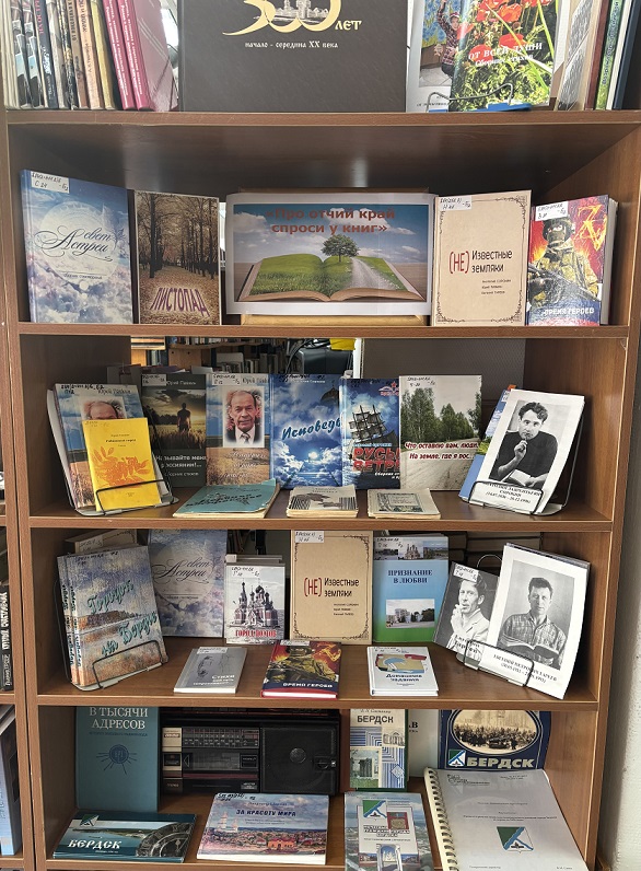 В библиотеке Нового оформлена книжная выставка «Про отчий край спроси у книг», на которой представлена литература, раскрывающая краеведческий фонд библиотеки. Выставка познакомит читателей с поэтами и писателями нашего края, людьми, воспевающими в своих произведениях удивительную и неповторимую красоту своей малой родины, ее величие и героизм. В сборниках произведений бердских авторов писатели делятся своими эмоциями и чувствами, рассказывая о том, как важен и любим для них родной край.