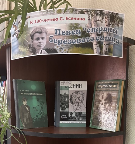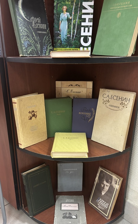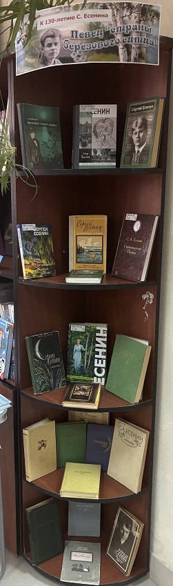 К юбилею знаменитого русского поэта Сергея Александровича Есенина, отмечаемому в 2025 году, в библиотеке в Новом подготовлена книжная выставка «Певец "страны берёзового ситца». Экспозиция представляет собой путешествие по страницам жизни и творчества Есенина, подчёркивая его любовь к русской природе, крестьянскому быту и глубоким чувствам, выраженным в яркой форме.